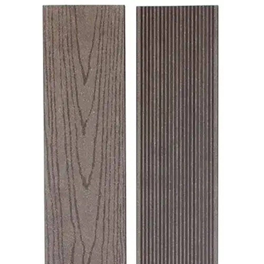 Террасная доска из древесно-полимерного композита с добавлением минералов (МДПК) 160 мм в цвете шоколад состоит из натуральной древесной муки, минералов, полимеров, также применяются красители и прочие добавки, в результате смешивания которых образуется износостойкий материал, обладающий огнеупорными и влагозащитными свойствами. Благодаря добавлению минералов доска прекрасно выдерживает воздействие атмосферных осадков по сравнению с классическим составом ДПК.